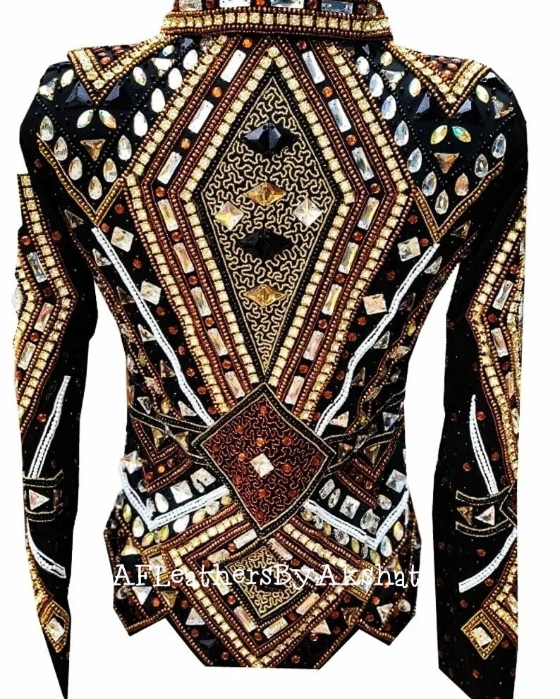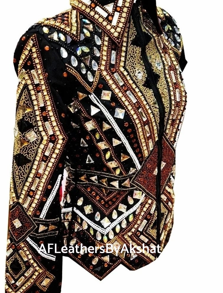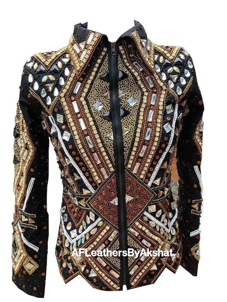 Now Ride with more colors:- Brown/ gold/ copper with Black base Showmanship, Horsemanship, Western pleasure Rodeo Queen Jackets For Sale.