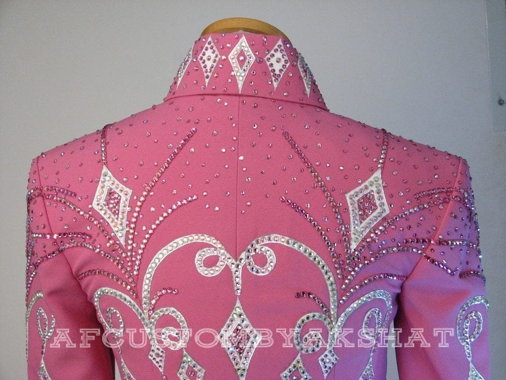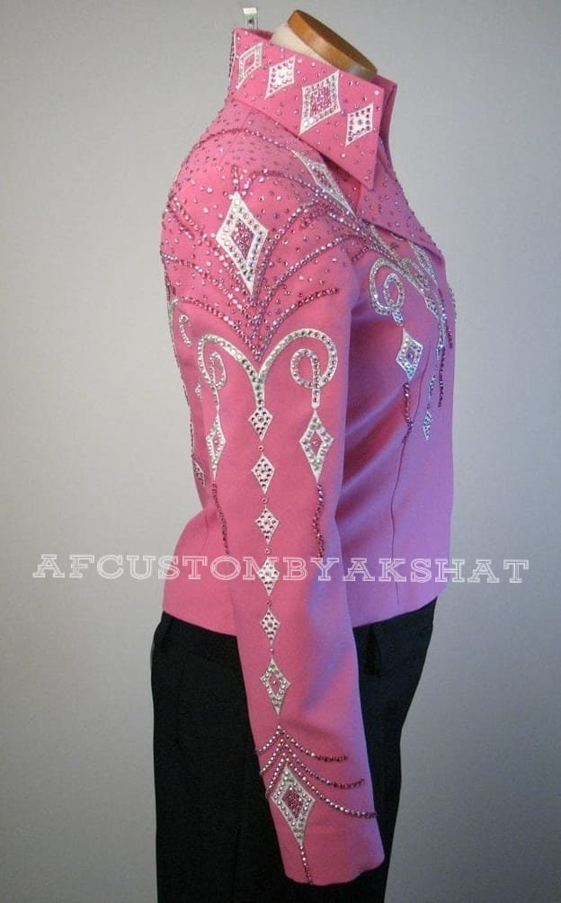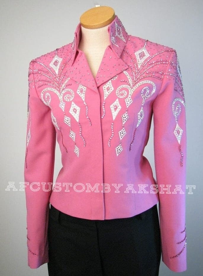Now Ride with more colors:- White/ Silver with pink base Showmanship, Horsemanship, Western pleasure Rodeo Queen Jackets For Sale.