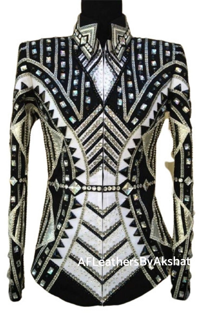 Now Ride with more colors:- White/ Gold with Black base Showmanship, Horsemanship, Western pleasure Rodeo Queen Jackets For Sale.