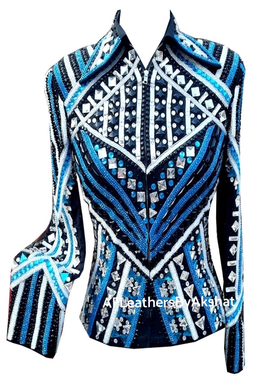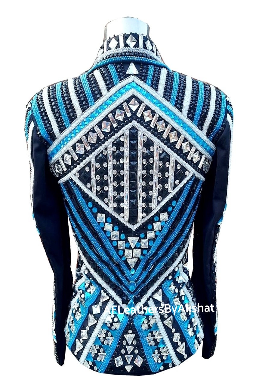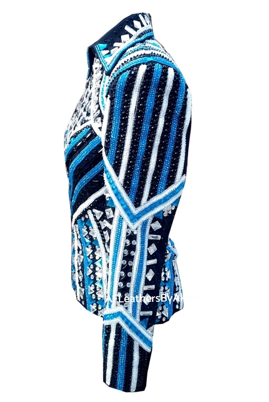 Now Ride with more colors:- Silver/ Sky Blue/White with Black base Showmanship, Horsemanship, Western pleasure Rodeo Queen Jackets For Sale.
