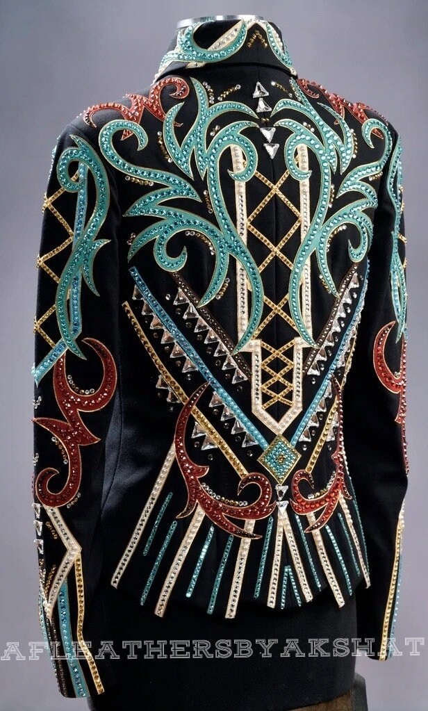 Now Ride with more colors:- Green/ Red with Black base Showmanship, Horsemanship, Western pleasure Rodeo Queen Jackets For Sale.
