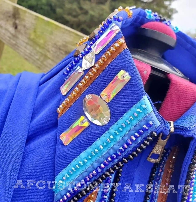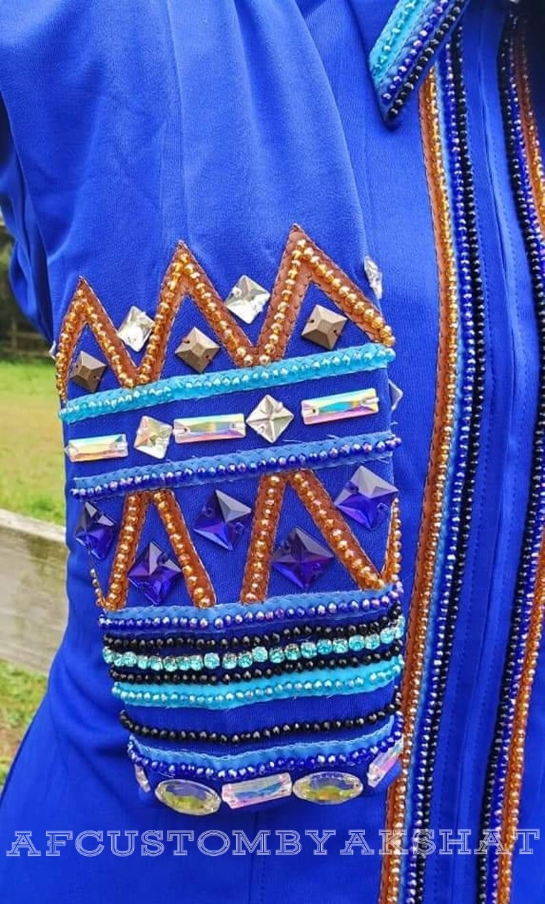 Now Ride with more colors:- Silver/ Gold with Blue base Showmanship, Horsemanship, Western pleasure Rodeo Queen Jackets For Sale.