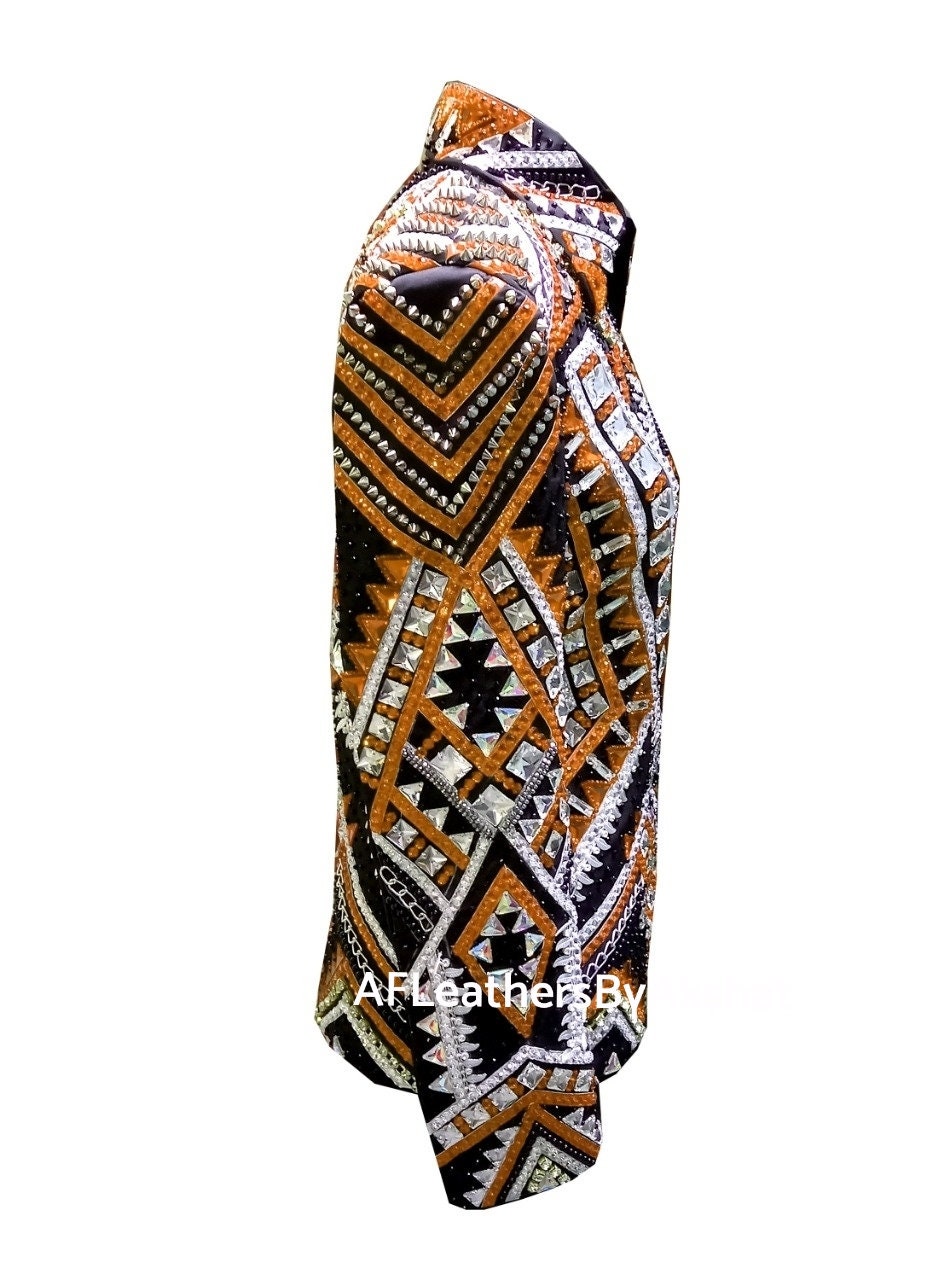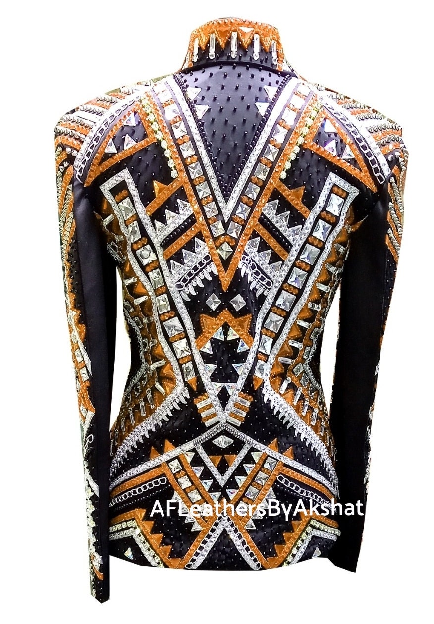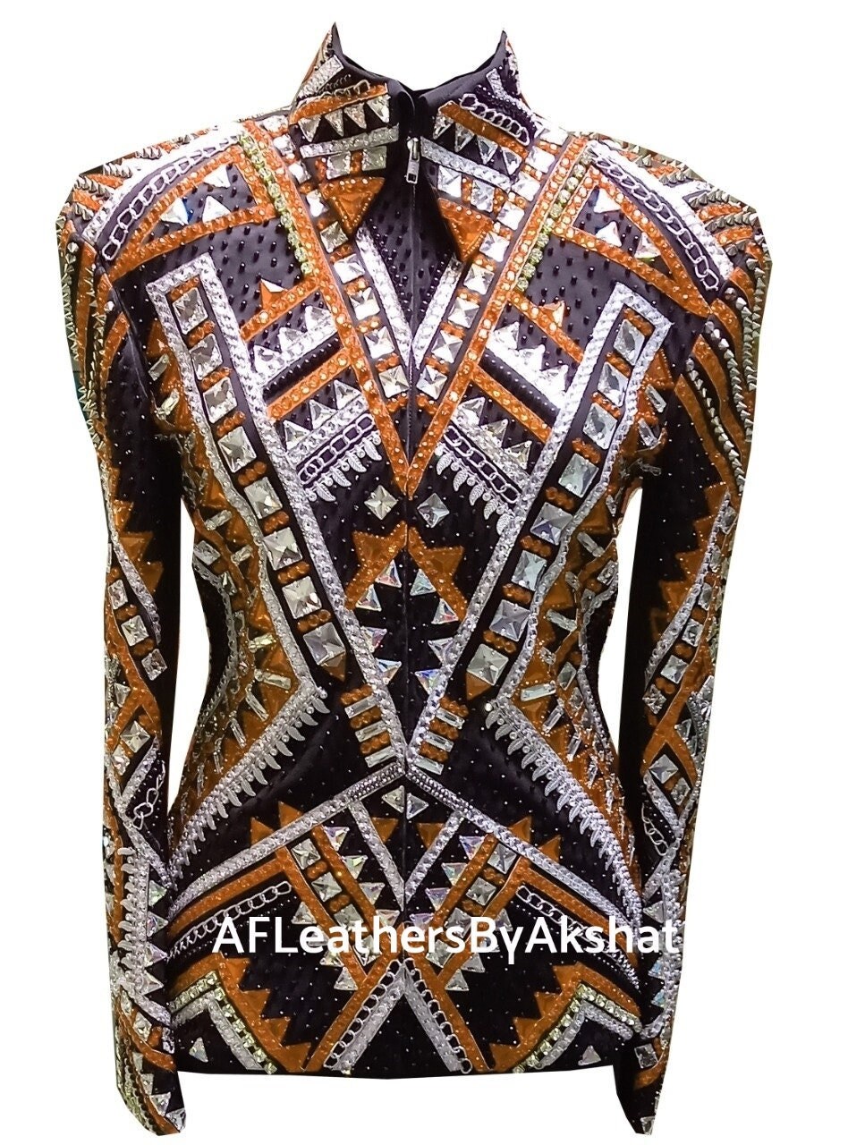 Now Ride with more colors:- Silver/ Orange with Black base Showmanship, Horsemanship, Western pleasure Rodeo Queen Jackets For Sale.