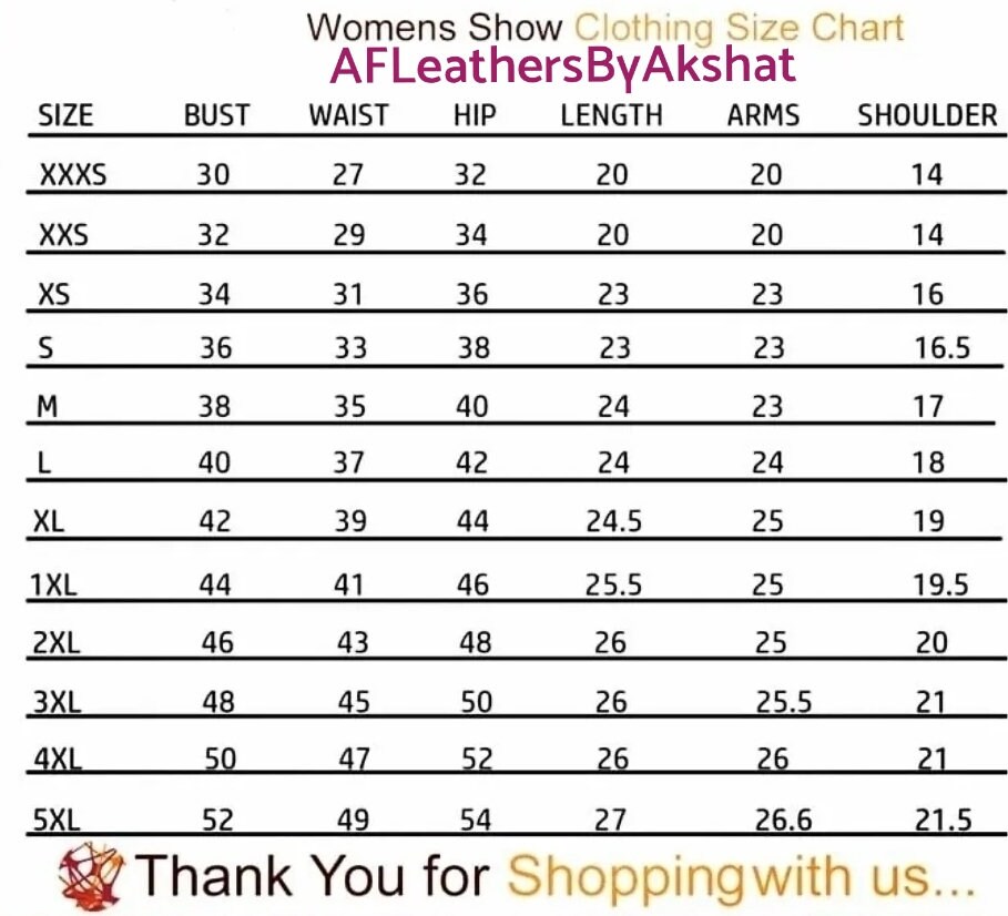 We offer XXS, XS, S, M, L, XL, XXL, XXXL,1X, 2X, 3X, 4X, 5X
