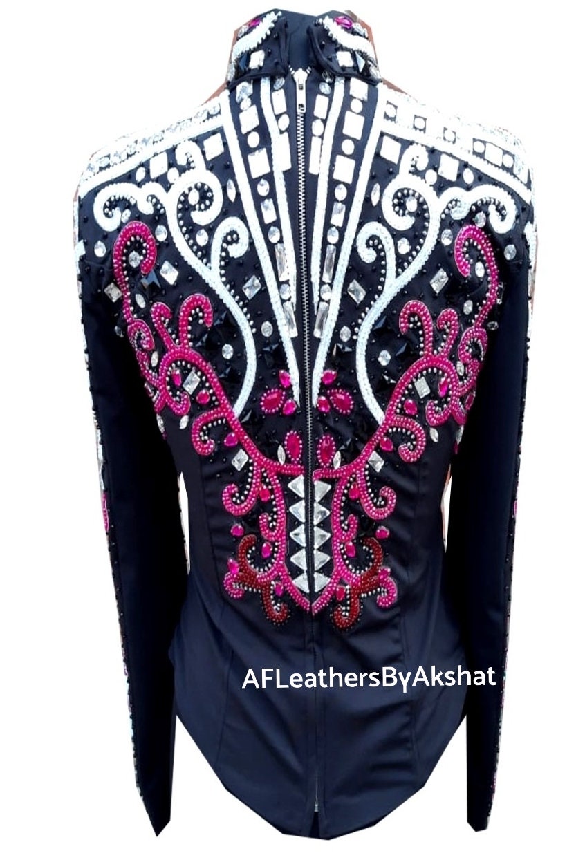 Now Ride with more colors:- Silver/ Pink with Black base Showmanship, Horsemanship, Western pleasure Rodeo Queen Jackets For Sale.