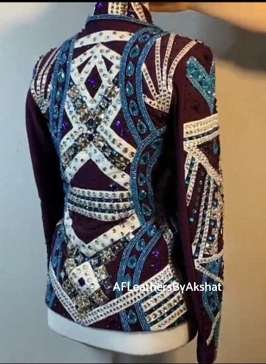 Now Ride with more colors:- Silver/ Skyblue with Maroon base Showmanship, Horsemanship, Western pleasure Rodeo Queen Jackets For Sale.