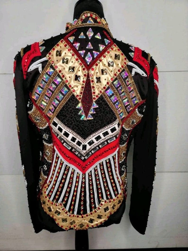Now Ride with more colors:- Silver/ Red / Gold with Black base Showmanship, Horsemanship, Western pleasure Rodeo Queen Jackets For Sale.