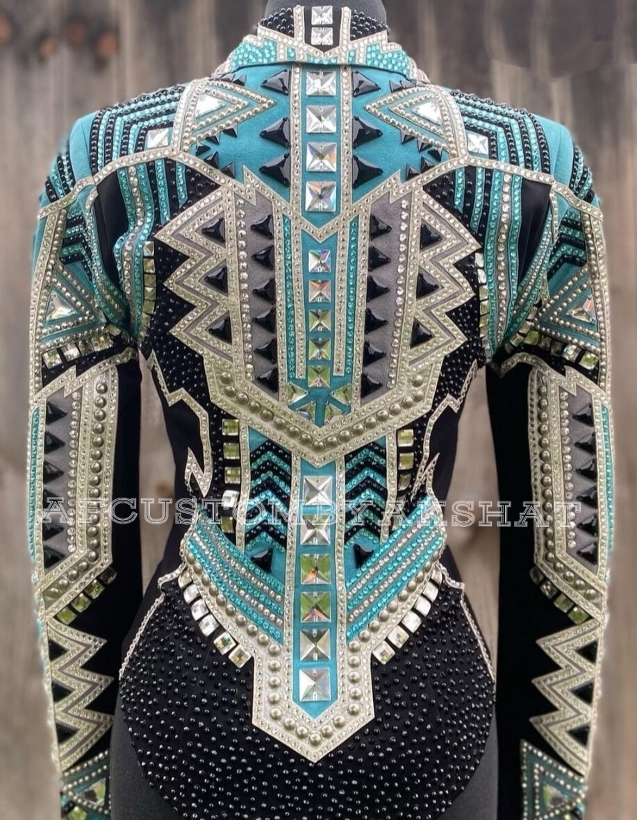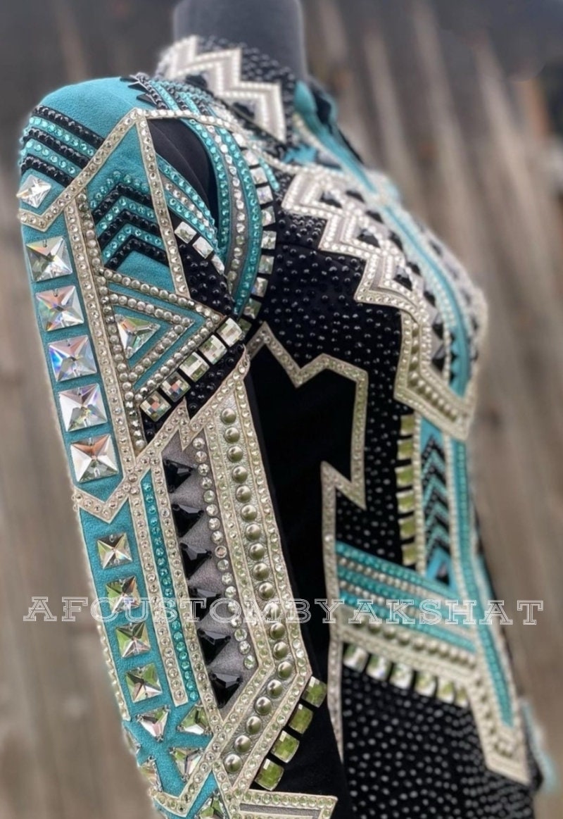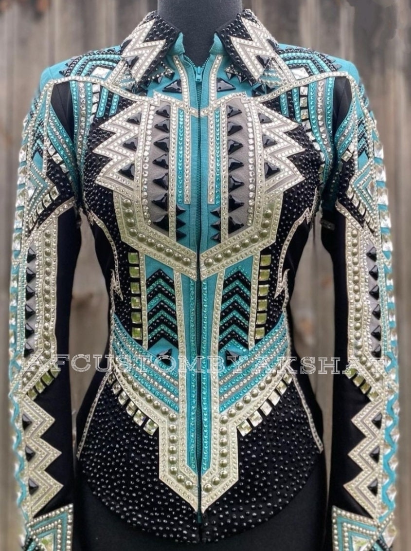 Now Ride with more colors:- Silver/sky blue with Black base Showmanship, Horsemanship, Western pleasure Rodeo Queen Jackets For Sale.