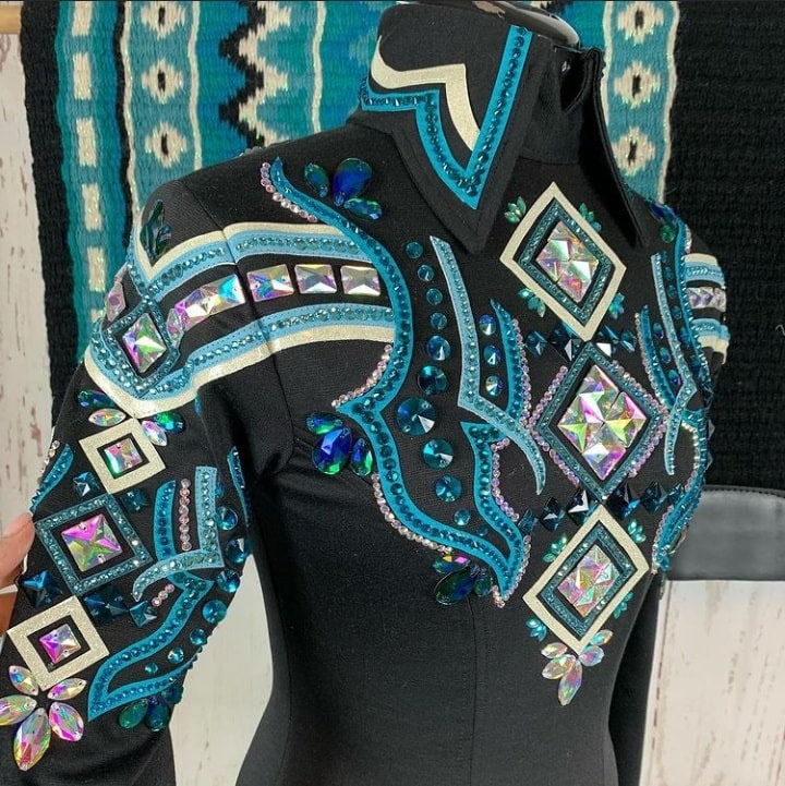 Now Ride with more colors:- Silver/ sky blue / green with Black base Showmanship, Horsemanship, Western pleasure Rodeo Queen Jackets For Sale.