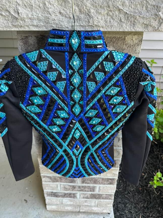 Now Ride with more colors:- royal blue/ teal with Black base Showmanship, Horsemanship, Western pleasure Rodeo Queen Jackets For Sale.