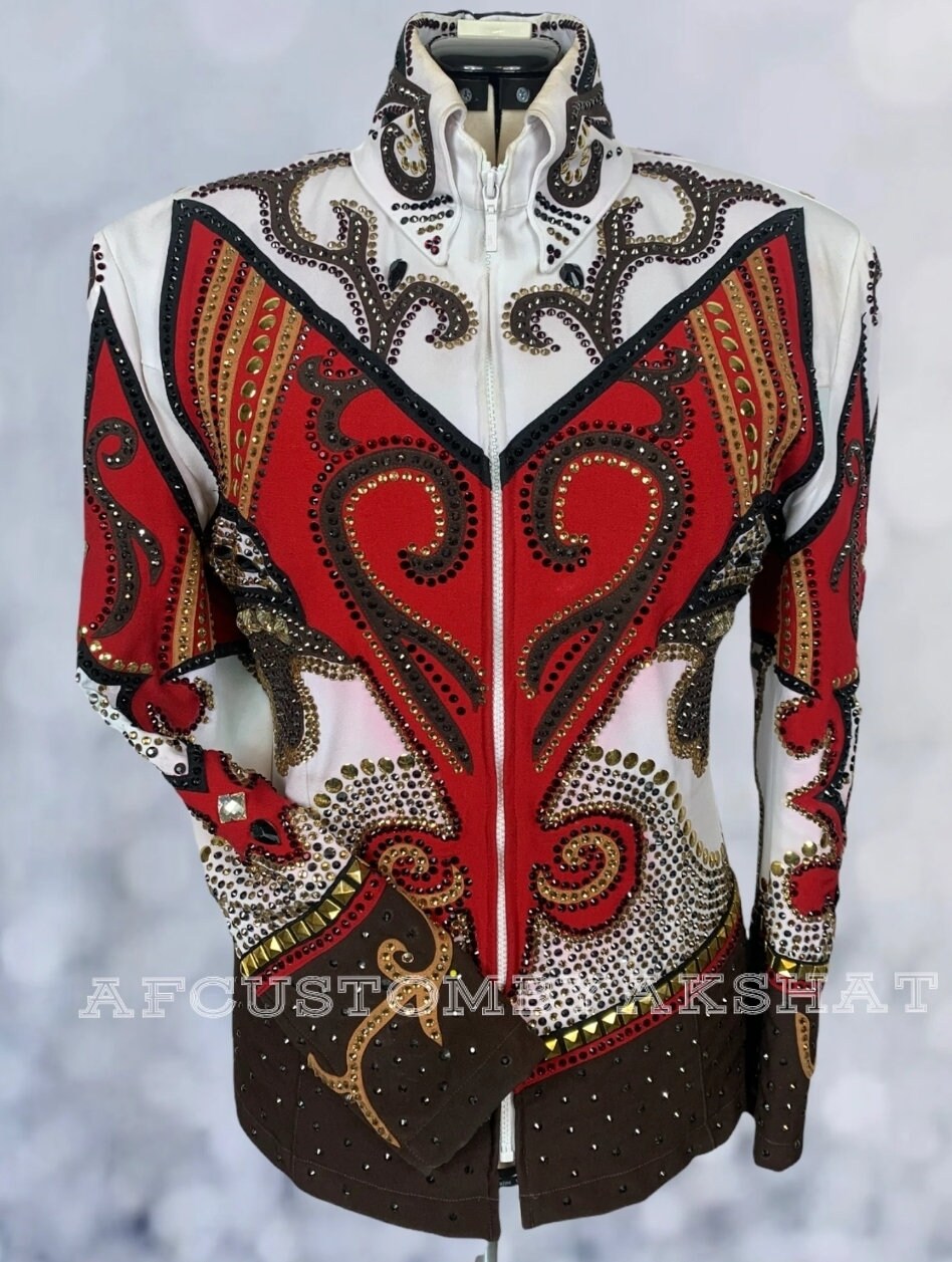 Now Ride with more colors:- Silver/ Red with white base Showmanship, Horsemanship, Western pleasure Rodeo Queen Jackets For Sale.