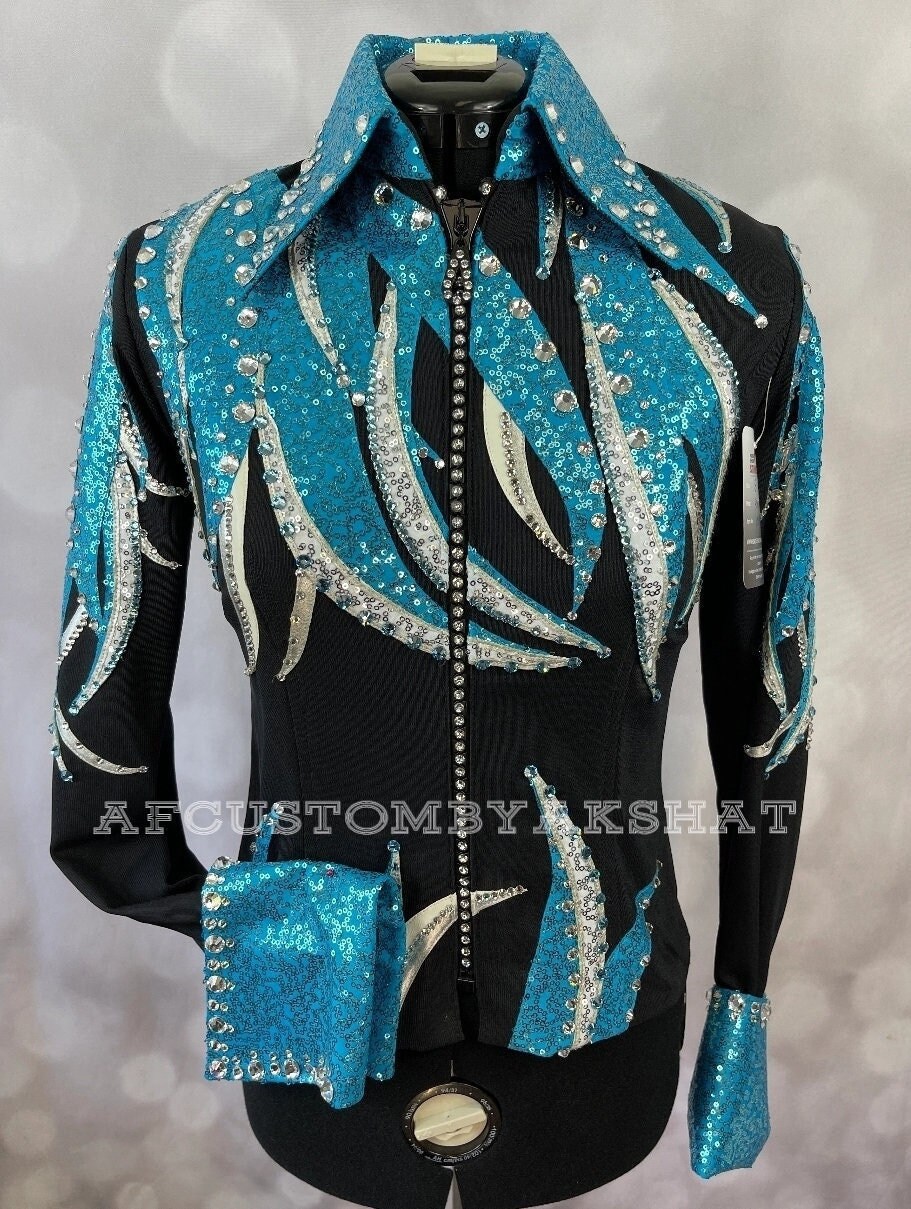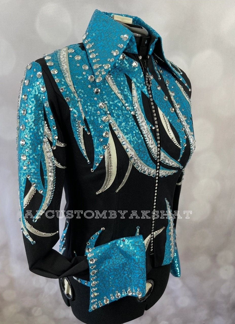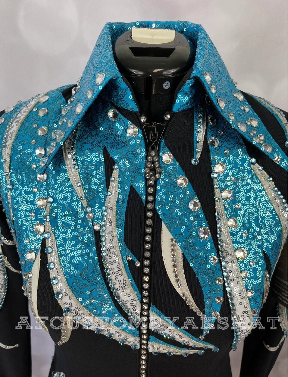 Now Ride with more colors:- Sky Blue/ Silver with Black base Showmanship, Horsemanship, Western pleasure Rodeo Queen Jackets For Sale.