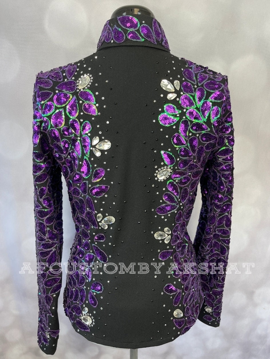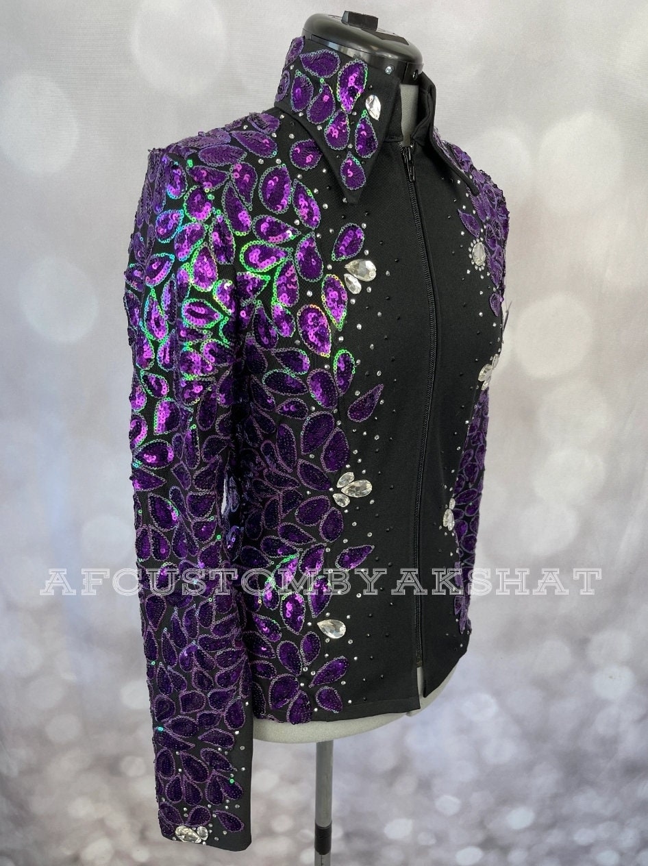 Now Ride with more colours:- Silver/ Purple with Black base Showmanship, Horsemanship, Western pleasure Rodeo Queen Jackets For Sale.