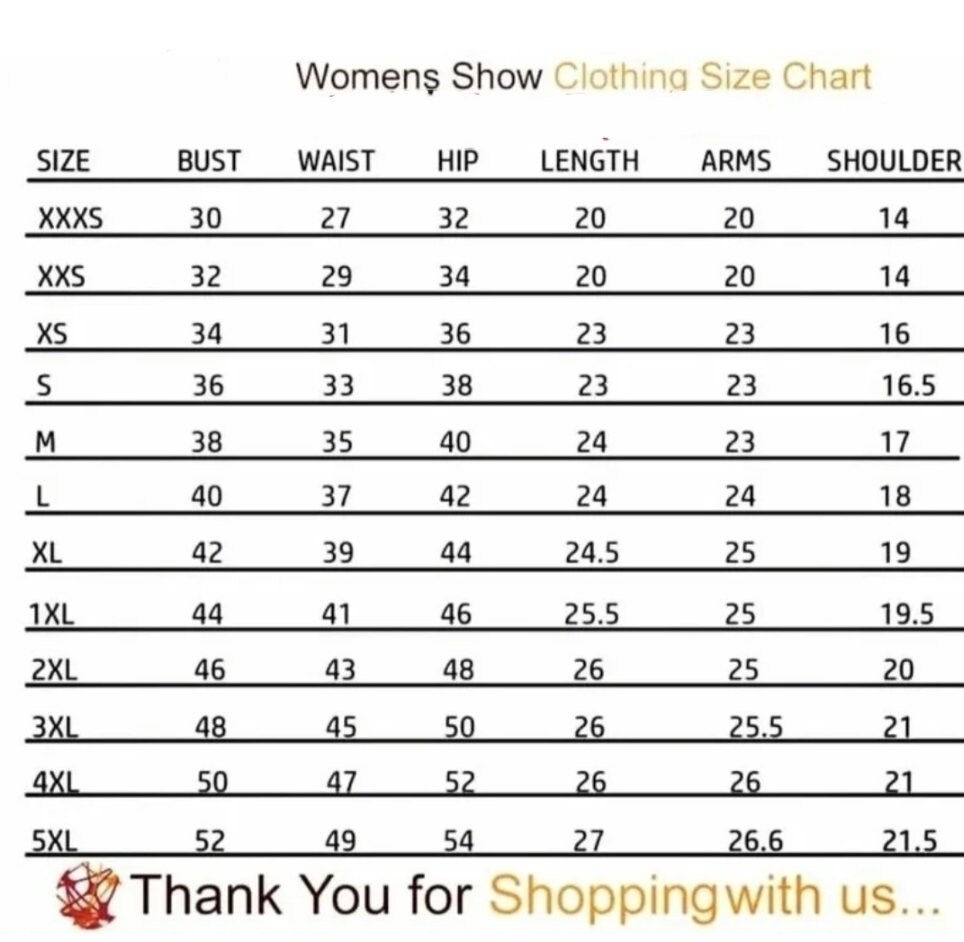 We offer XXS, XS, S, M, L, XL, XXL, XXXL,1X, 2X, 3X, 4X, 5X