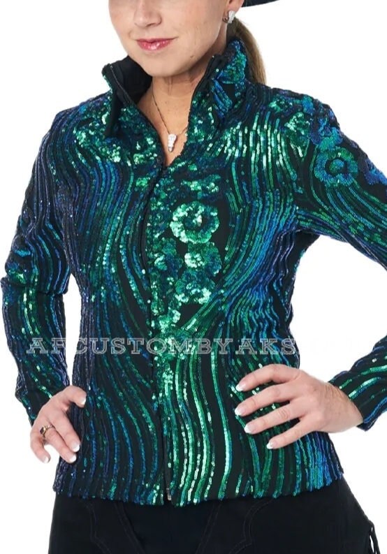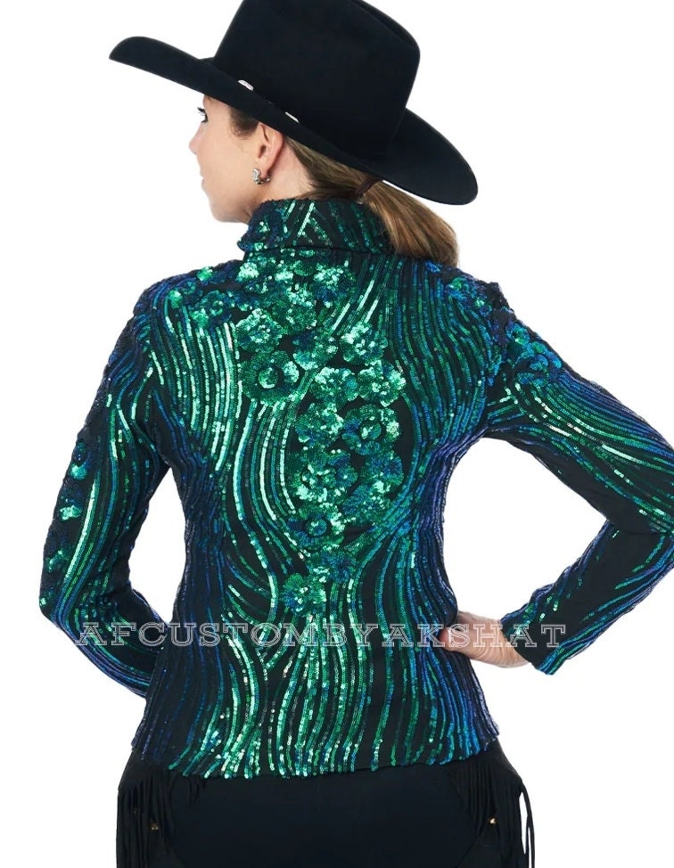 Now Ride with more colors:- Green with Black base Showmanship, Horsemanship, Western pleasure Rodeo Queen Jackets For Sale.