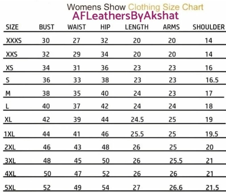 We offer XXS, XS, S, M, L, XL, XXL, XXXL,1X, 2X, 3X, 4X, 5X