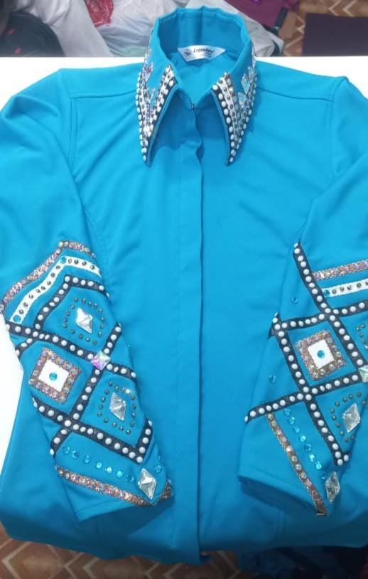 Now Ride with more colors:- Silver with sky blue base Showmanship, Horsemanship, Western pleasure Rodeo Queen Jackets For Sale.