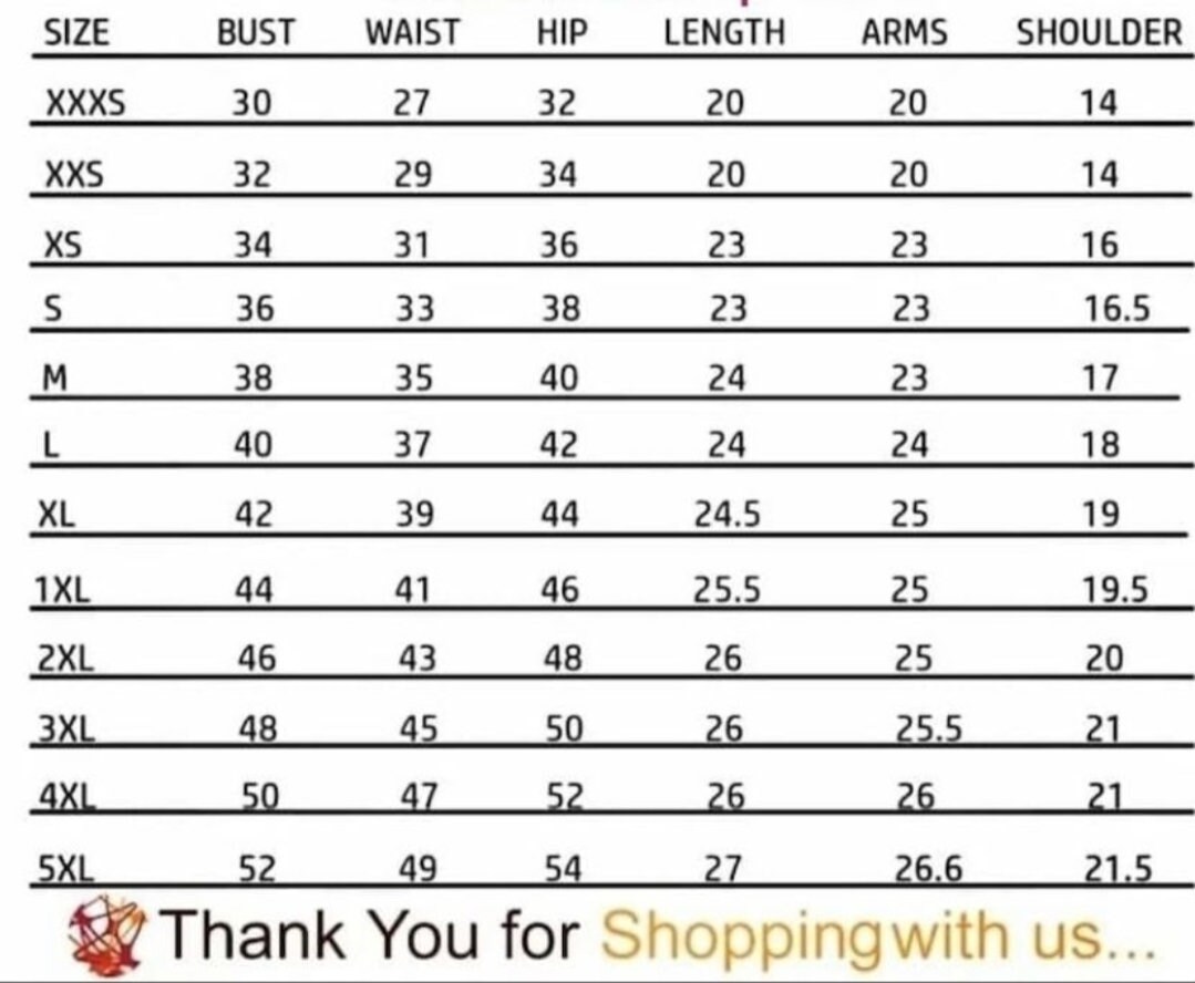 We offer XXS, XS, S, M, L, XL, XXL, XXXL,1X, 2X, 3X, 4X, 5X