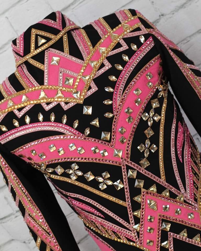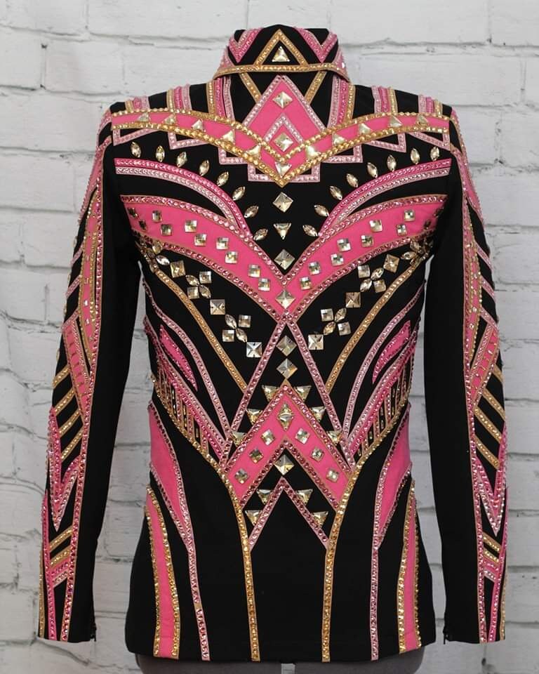Now Ride with more colors:- gold/ pink with Black base Showmanship, Horsemanship, Western pleasure Rodeo Queen Jackets For Sale.