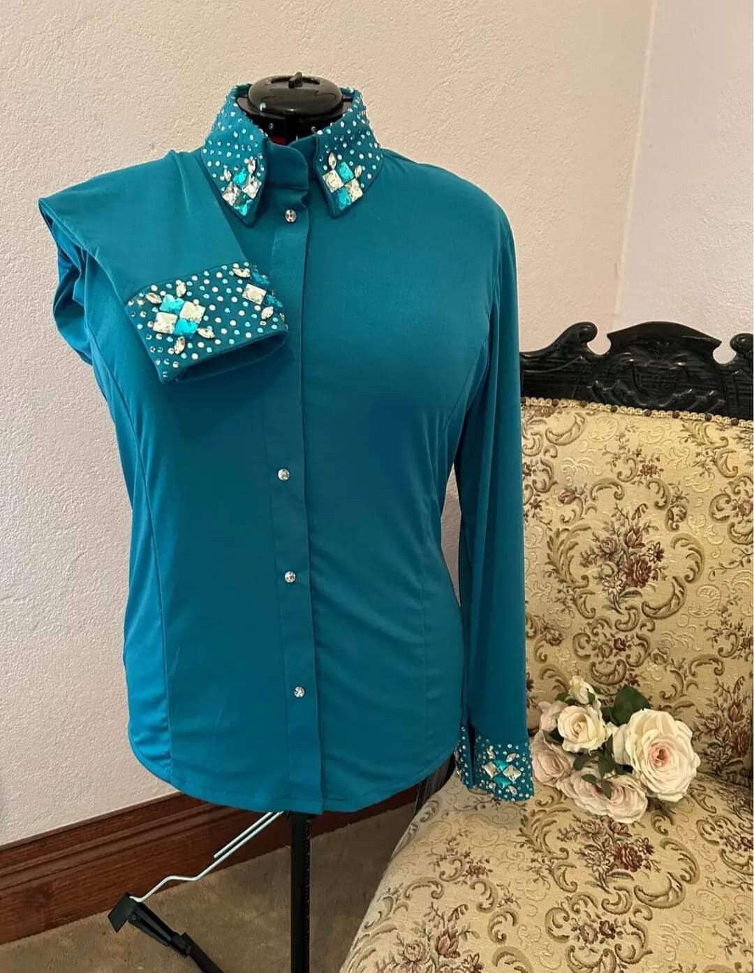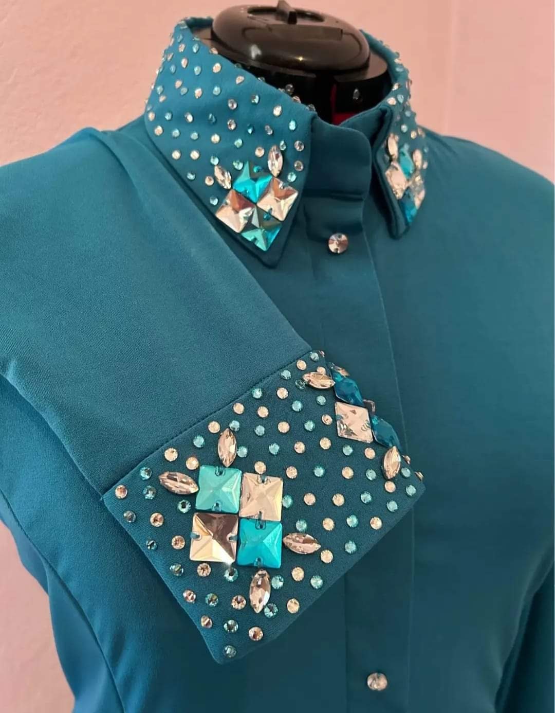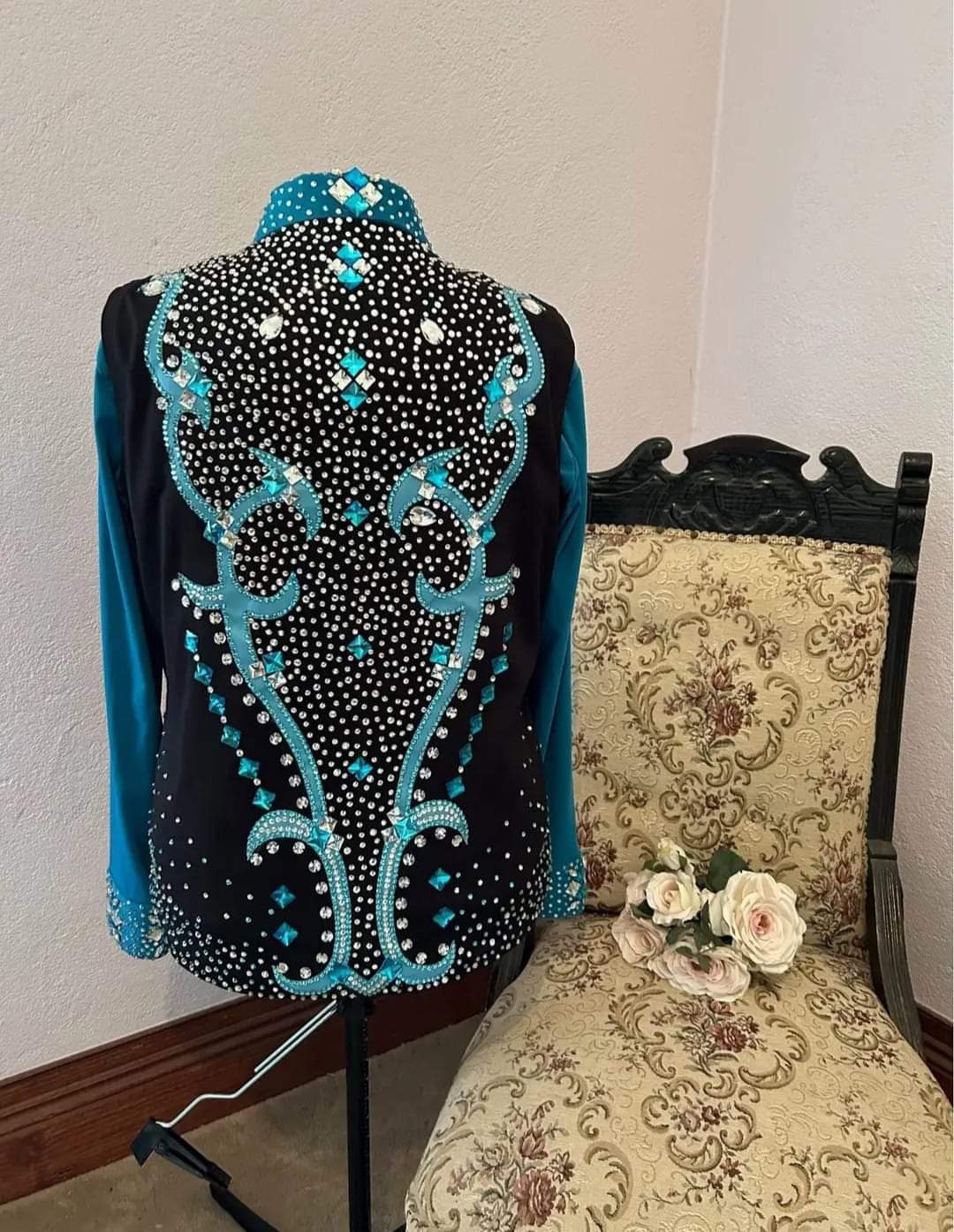 Now Ride with more colors:- Silver/ teal with black base Showmanship, Horsemanship, Western pleasure Rodeo Queen Jackets For Sale.