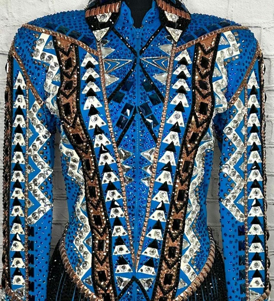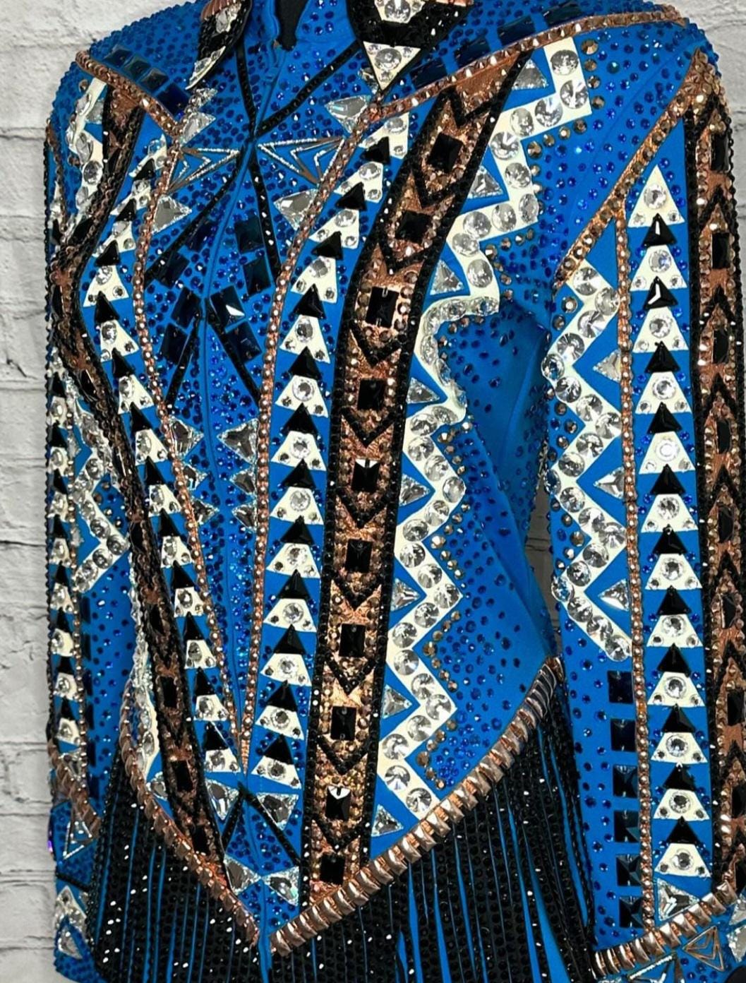 Now Ride with more colors:- Silver/ Gold/ Black with Blue base Showmanship, Horsemanship, Western pleasure Rodeo Queen Jackets For Sale.