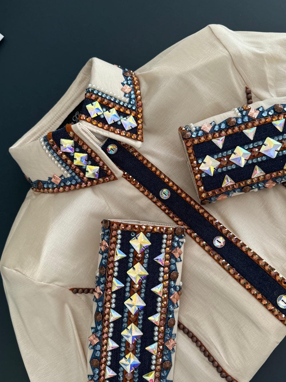 Now Ride with more colors:- Silver/ brown/White with cream and red base Showmanship, Horsemanship, Western pleasure Rodeo Queen Jackets For Sale.