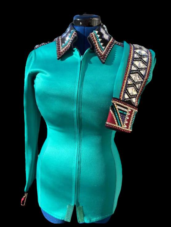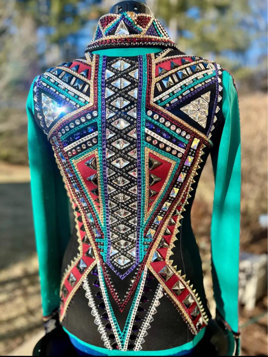 Now Ride with more colors:- turquoise/ silver/ red with Black base Showmanship, Horsemanship, Western pleasure Rodeo Queen Jackets For Sale.