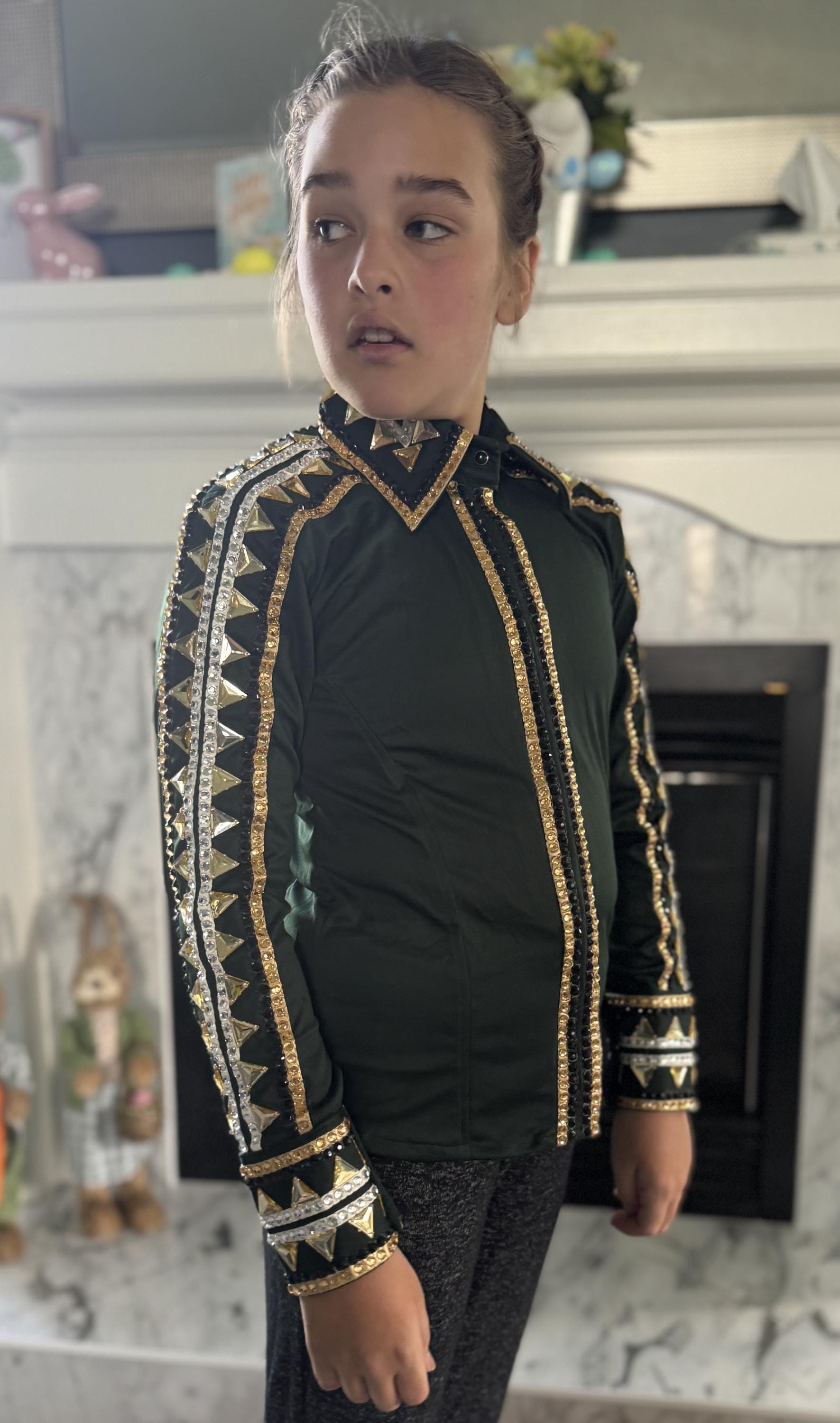 Now Ride with more colors:- gold/dark green base Showmanship, Horsemanship, Western pleasure Rodeo Queen Jackets For Sale.