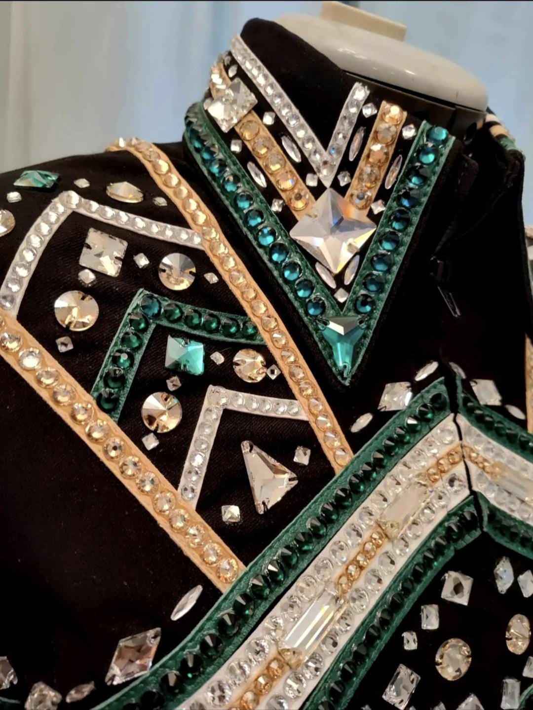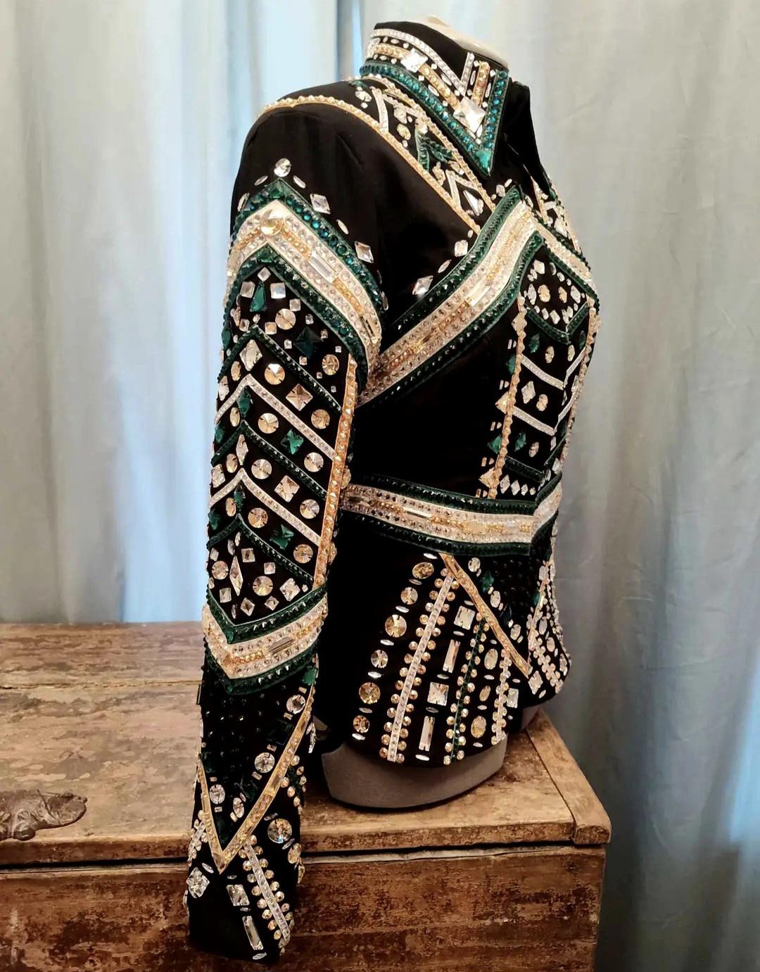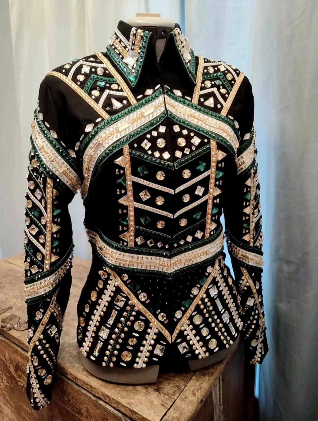 Now Ride with more colors:- gold - white with black base Showmanship, Horsemanship, Western pleasure Rodeo Queen Jackets For Sale.