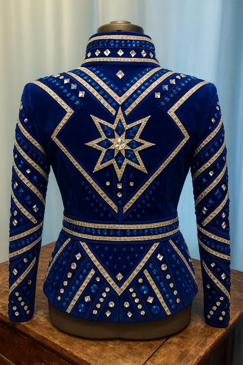 Now Ride with more colors:- Gold/royal blue with Black base Showmanship, Horsemanship, Western pleasure Rodeo Queen Jackets For Sale.