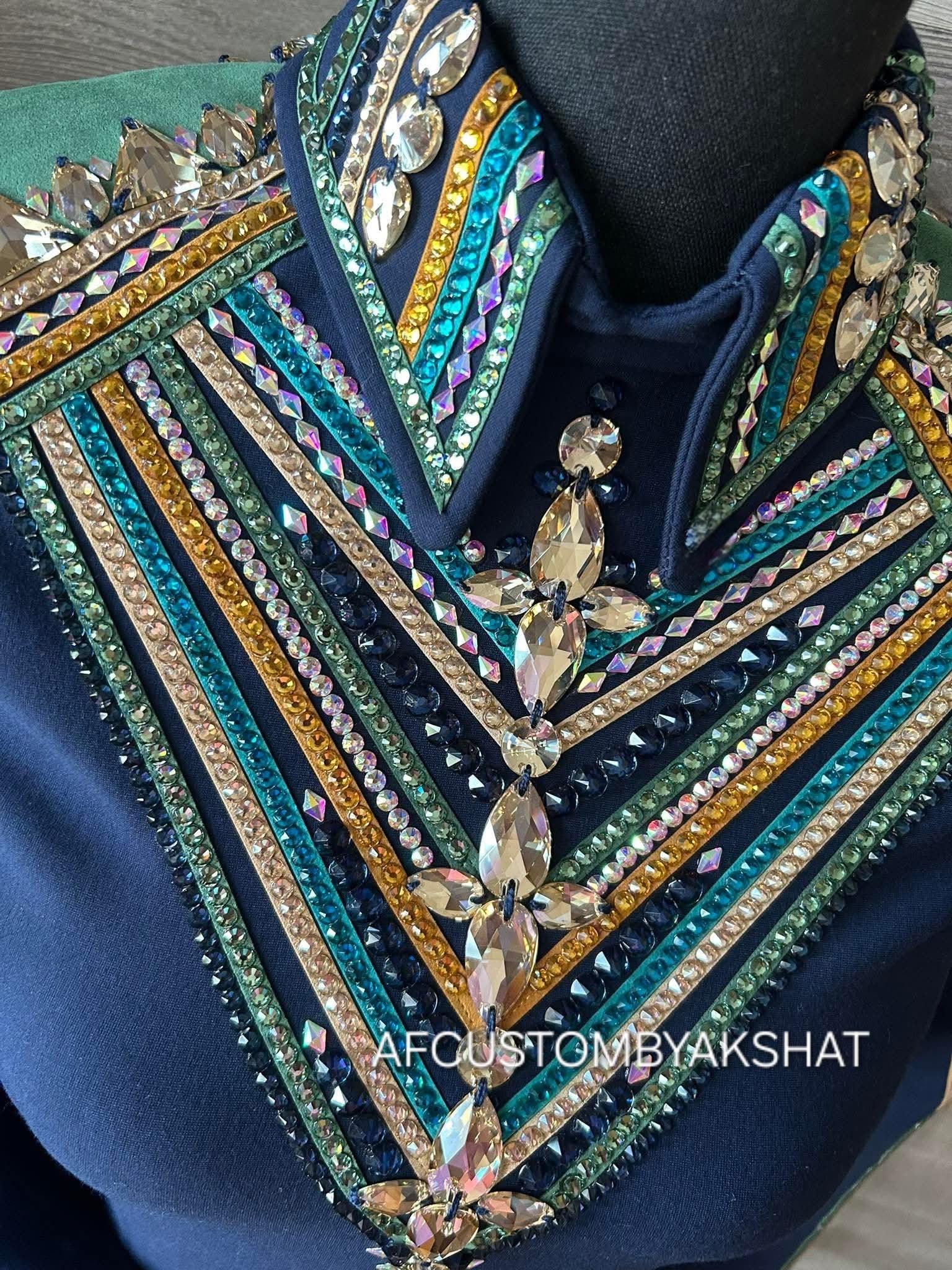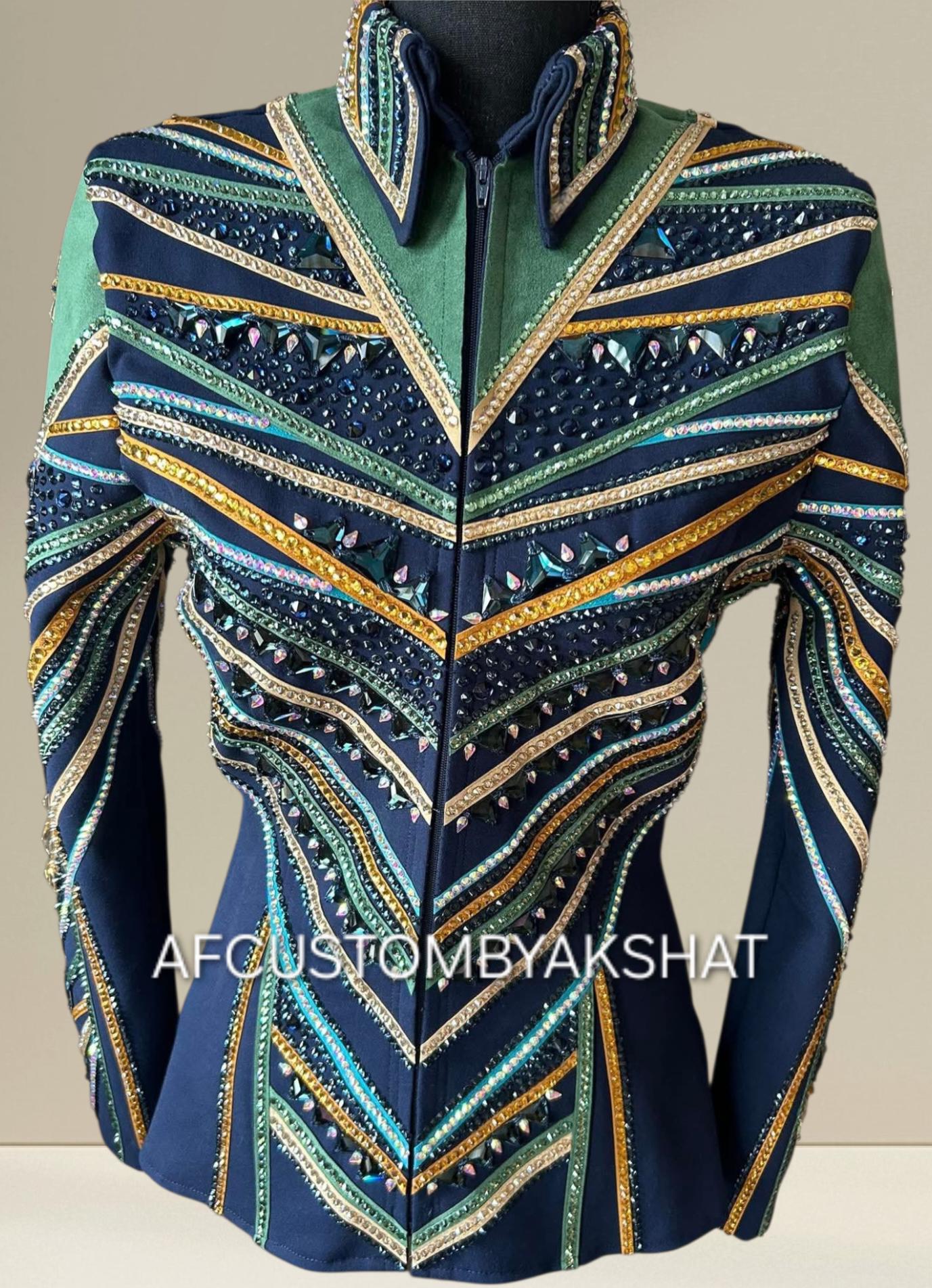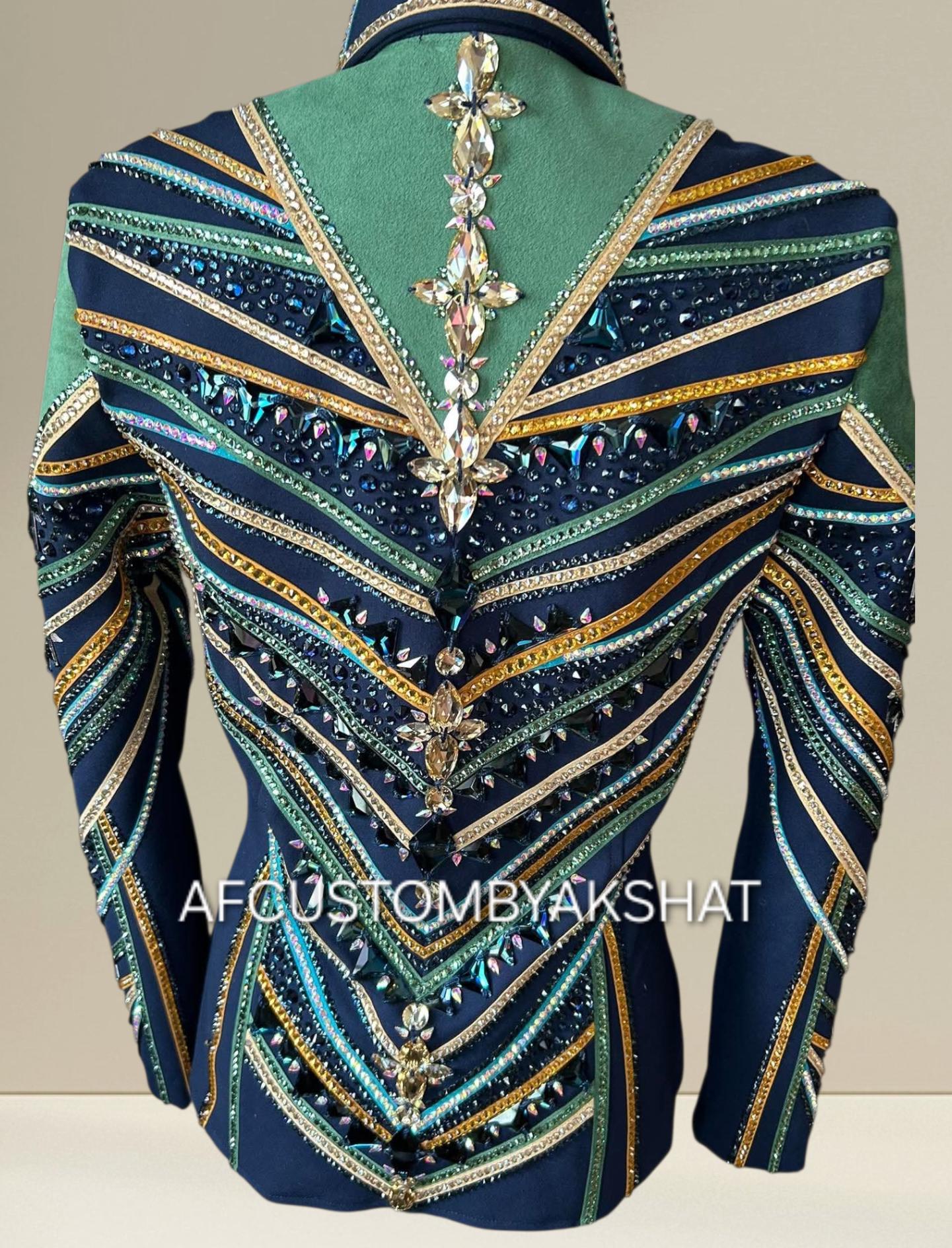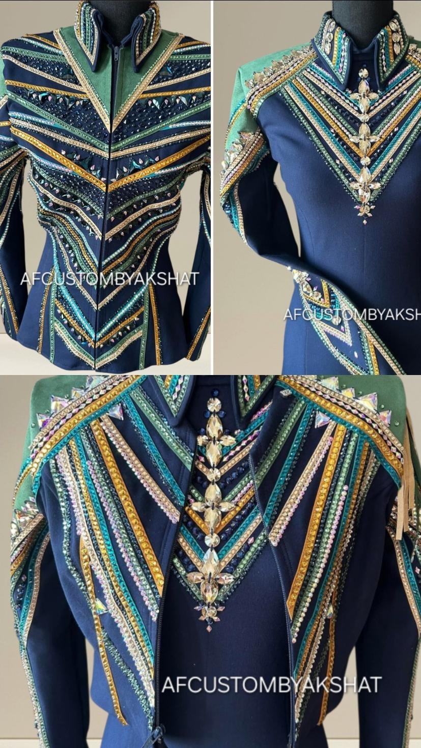 Now Ride with more colors:- turquoise suede / gold with navy blue base Showmanship, Horsemanship, Western pleasure Rodeo Queen Jackets For Sale.