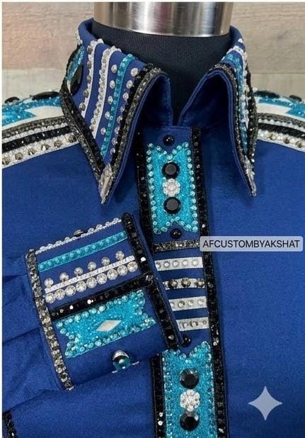 Whether you choose the vibrant "cobalt blue" or the sophisticated "deep red," each shirt is meticulously hand-finished with premium beadwork and rhinestones to ensure you shine under the judge’s lights.